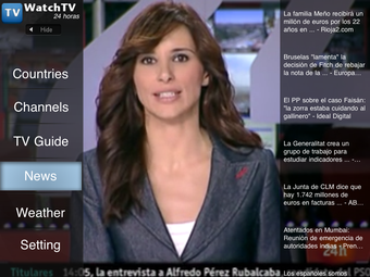 Por si fuera poco, mientras miras un canal, puedes acceder desde el menú lateral a la lista de cadenas sin perder de vista lo que estás viendo. También puedes añadir en la pantalla una guía de programación, las últimas noticias y el estado del tiempo en tu ciudad. WatchTV HD es prácticamente una tele interactiva.